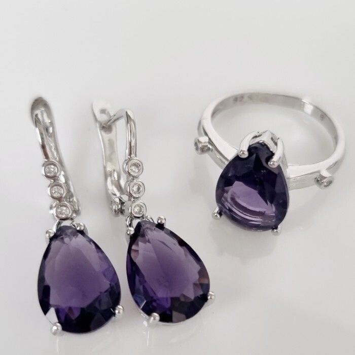 Комплект ювелирной бижутерии серьги и кольцо 20 р, покрытие посеребрение, вставка: фианиты, цвет: фиолетовый и прозрачный, арт.213.944-20 2 фото