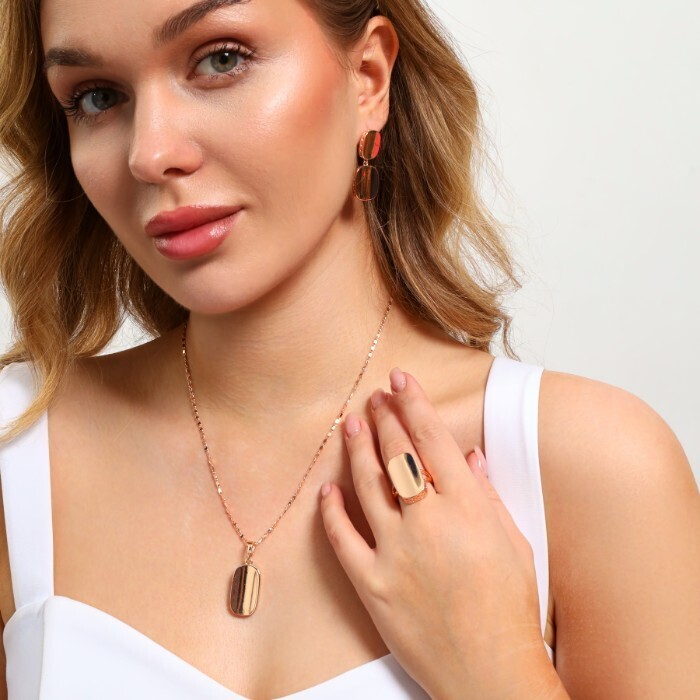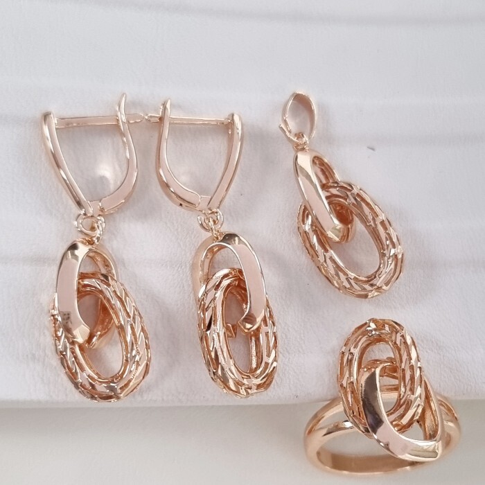 Комплект ювелирной бижутерии коллекция "Дубай" серьги, кулон и кольцо 18 р, покрытие позолота, арт.213.950-18 2 фото
