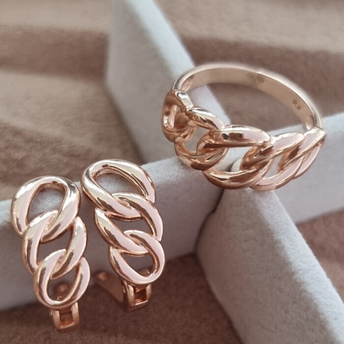Комплект ювелирной бижутерии коллекция "Дубай" серьги и кольцо 17 р, покрытие позолота, арт.213.955-17 2 фото