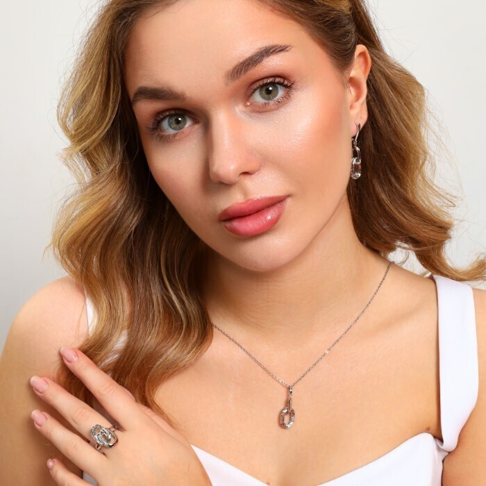 Комплект ювелирной бижутерии серьги, кулон и кольцо 19 р, покрытие посеребрение, арт.213.946-19 2 фото