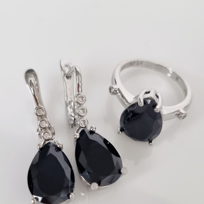 Комплект ювелирной бижутерии серьги и кольцо 18 р, покрытие посеребрение, вставка: фианиты, цвет: черный и прозрачный, арт.213.943-18 2 фото