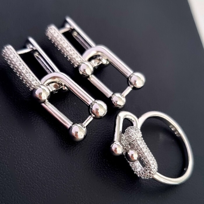 Комплект ювелирной бижутерии серьги и кольцо 17 р, покрытие посеребрение, вставка: фианиты, цвет: прозрачный, арт.213.947-17 2 фото