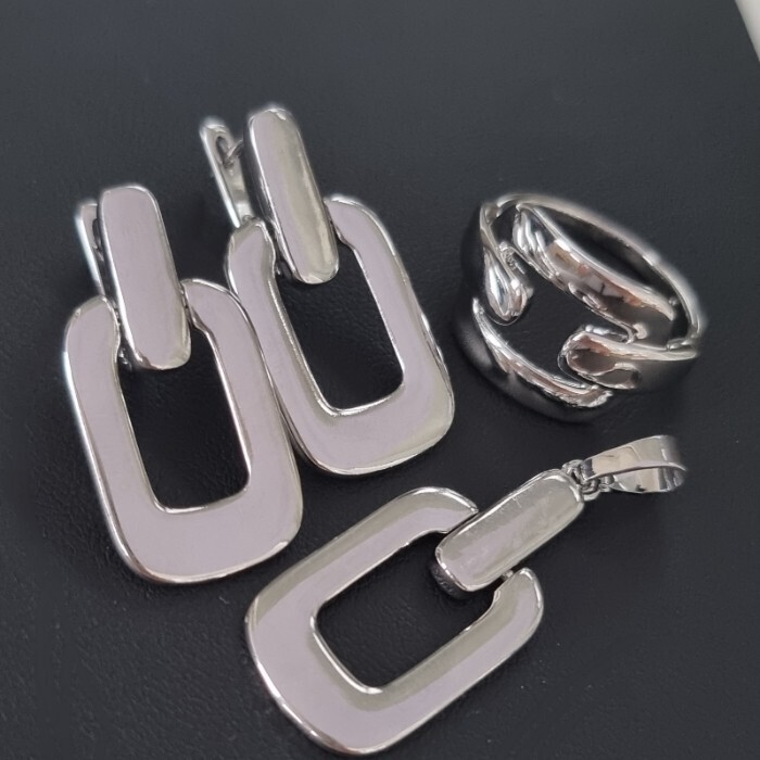 Комплект ювелирной бижутерии серьги, кулон и кольцо 18 р, покрытие посеребрение, арт.213.945-18 2 фото