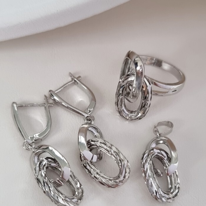 Комплект ювелирной бижутерии серьги, кулон и кольцо 18 р, покрытие посеребрение, арт.213.946-18 2 фото