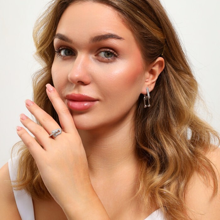 Комплект ювелирной бижутерии серьги и кольцо 18 р, покрытие посеребрение, вставка: фианиты, цвет: прозрачный, арт.213.947-18 2 фото