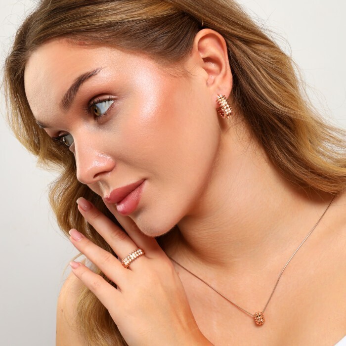 Комплект ювелирной бижутерии Итальянское золото (покрытие желтое 14к), серьги, кулон и кольцо 20 р, вставка: фианиты, цвет: прозрачный, арт.213.953-20 2 фото