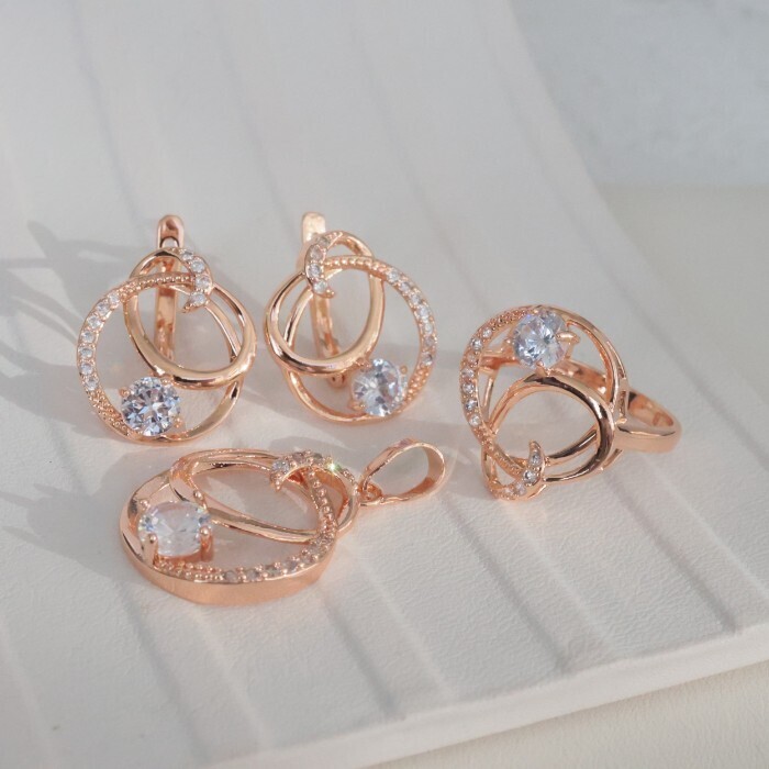Комплект ювелирная бижутерия коллекция  "Дубай" серьги и кольцо 18 р, покрытие: позолота, вставка: фианиты, цвет: прозрачный, арт.213.784-18 2 фото