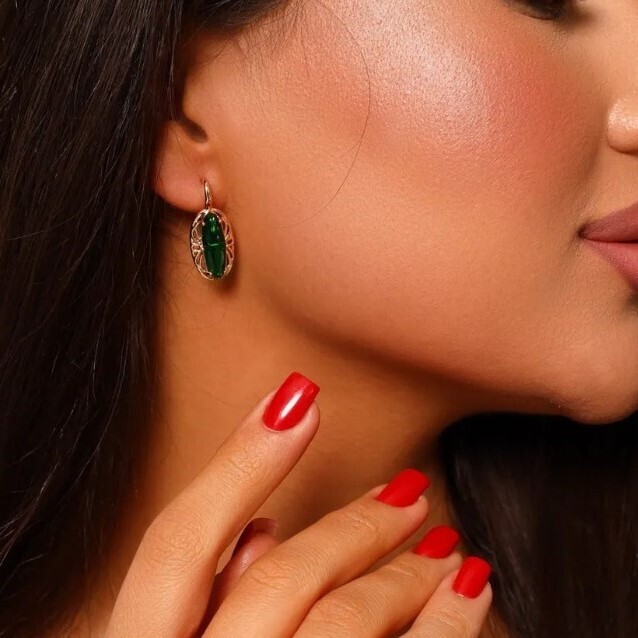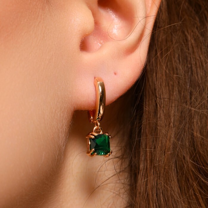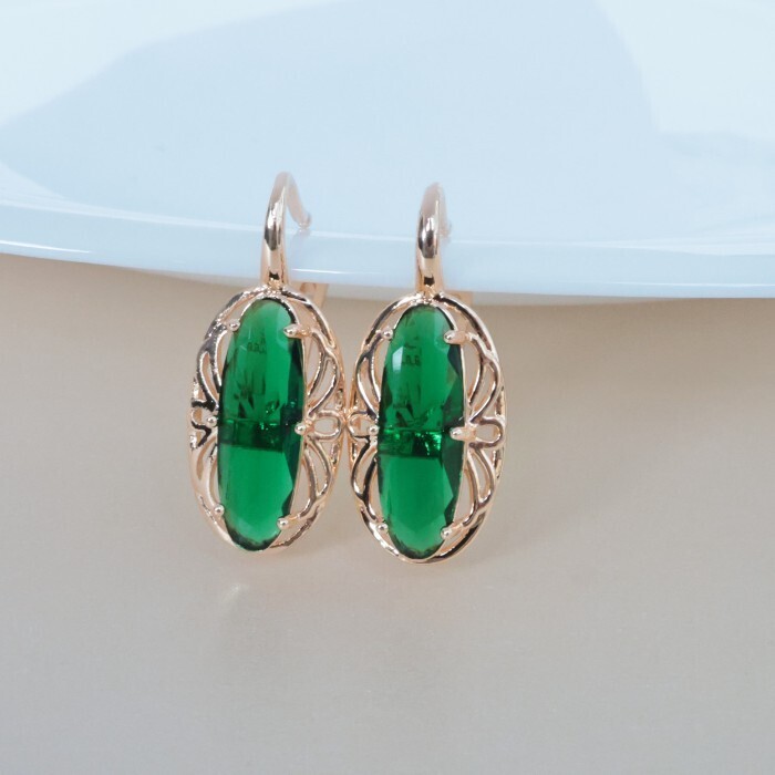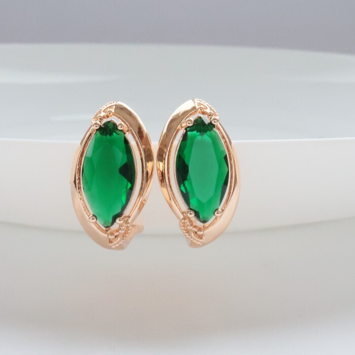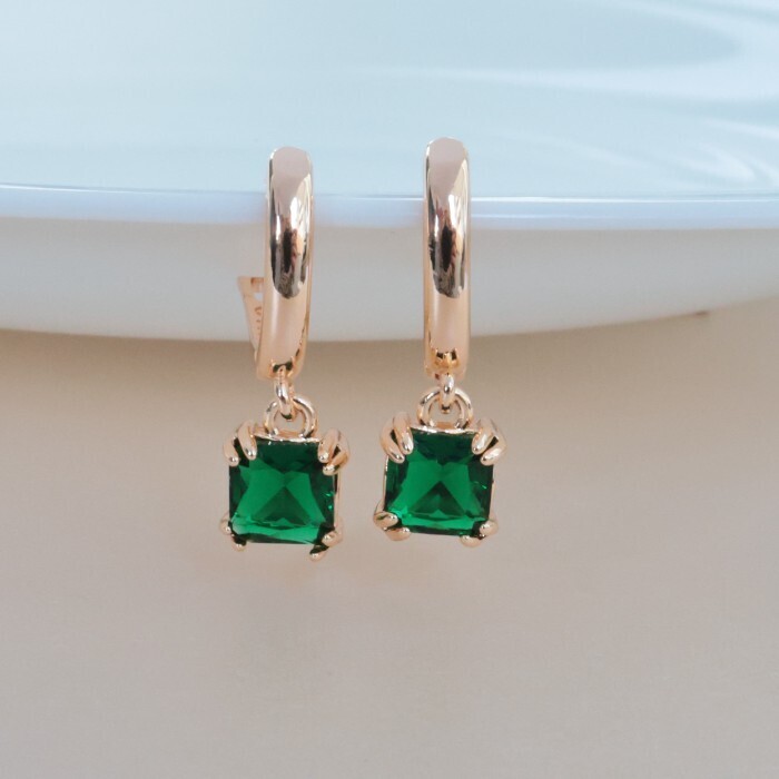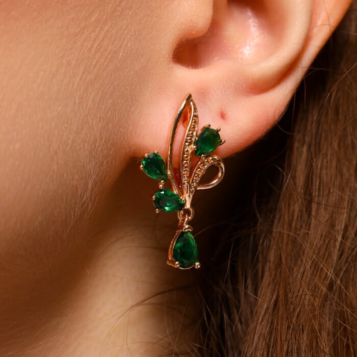 Серьги ювелирная бижутерия коллекция "Дубай" покрытие позолота, вставка: фианиты, цвет: зеленый, арт.314.345 2 фото
