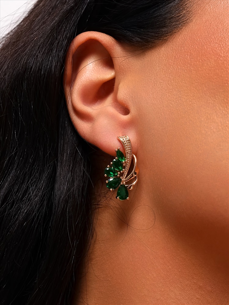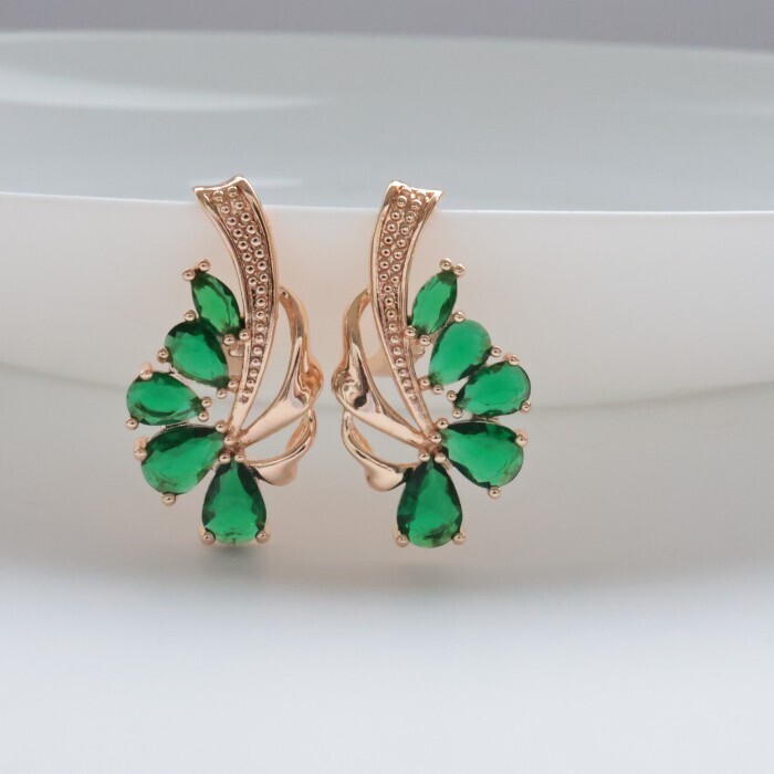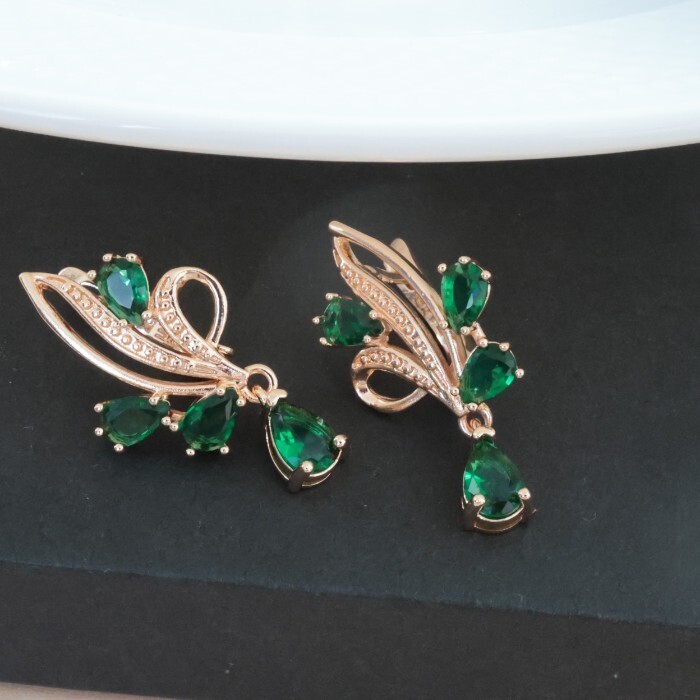 Серьги цветы ювелирная бижутерия коллекция "Дубай" покрытие: позолота, вставка: фианиты, цвет: зеленый, арт.314.389 2 фото