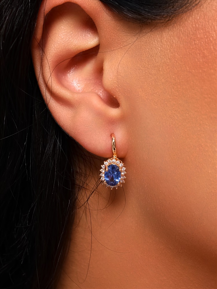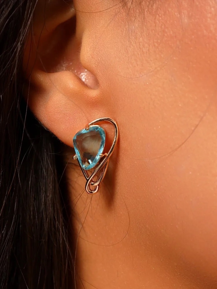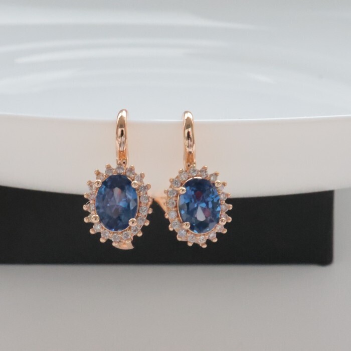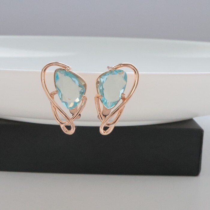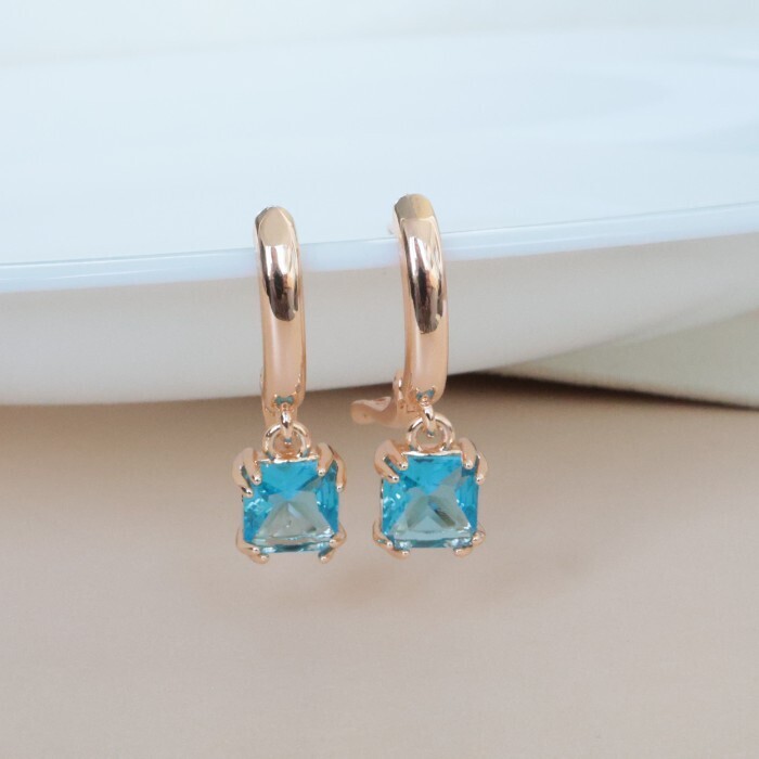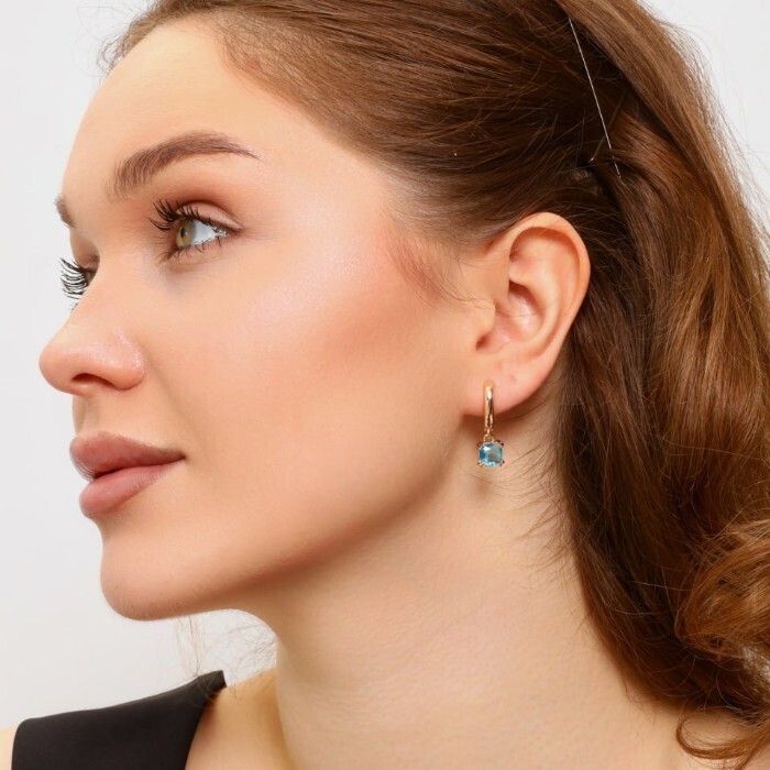 Серьги с камнем ювелирная бижутерия коллекция "Дубай", покрытие позолота, вставка: фианиты, цвет: голубой, арт.314.380 2 фото