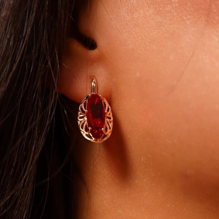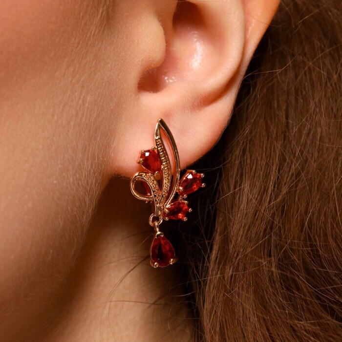 Серьги ювелирная бижутерия коллекция "Дубай" покрытие позолота, вставка: фианиты, цвет: красный, арт.314.346 2 фото