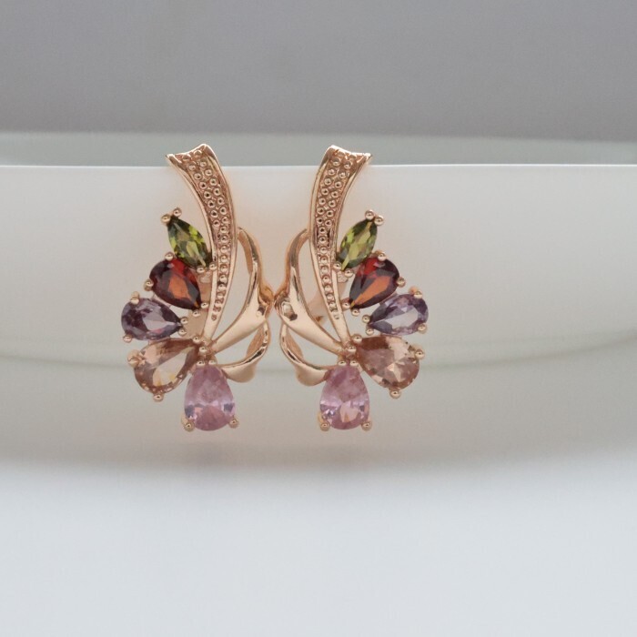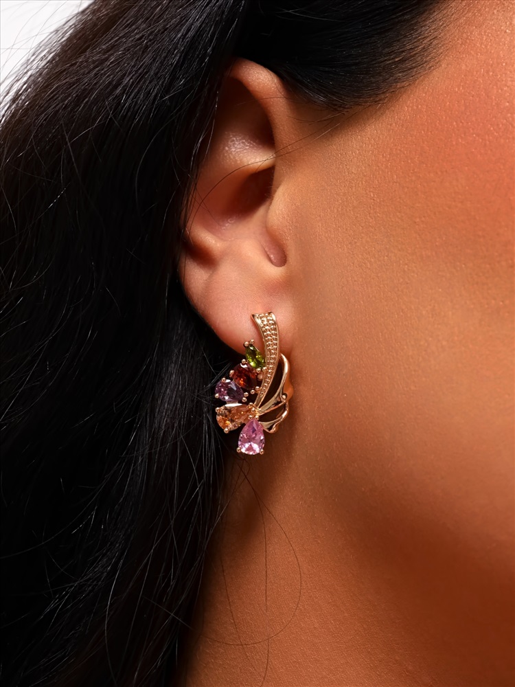 Серьги цветы ювелирная бижутерия коллекция "Дубай" покрытие: позолота, вставка: фианиты, цвет: разноцветные камни, арт.314.392 2 фото