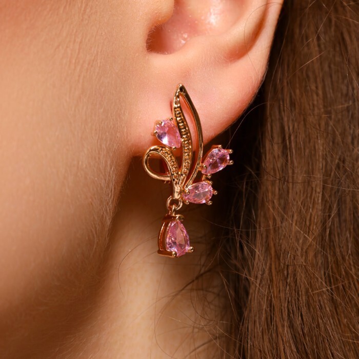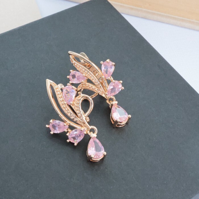 Серьги цветы ювелирная бижутерия коллекция "Дубай" позолота, вставка: фианиты, цвет: розовый, арт.314.334 2 фото