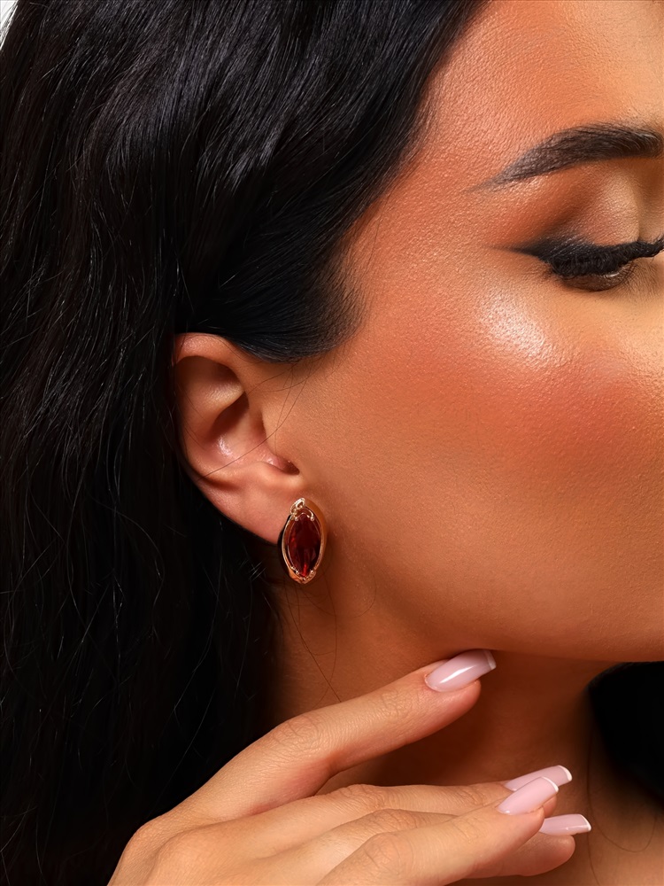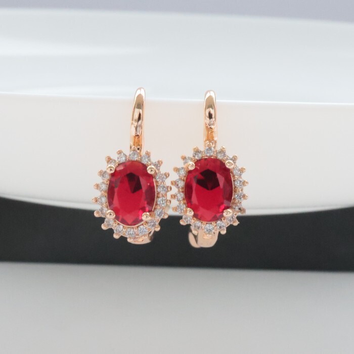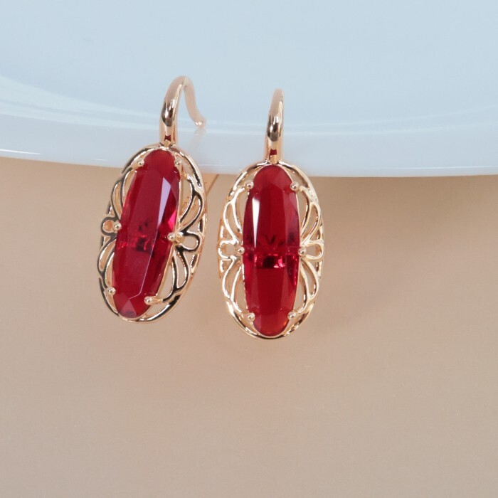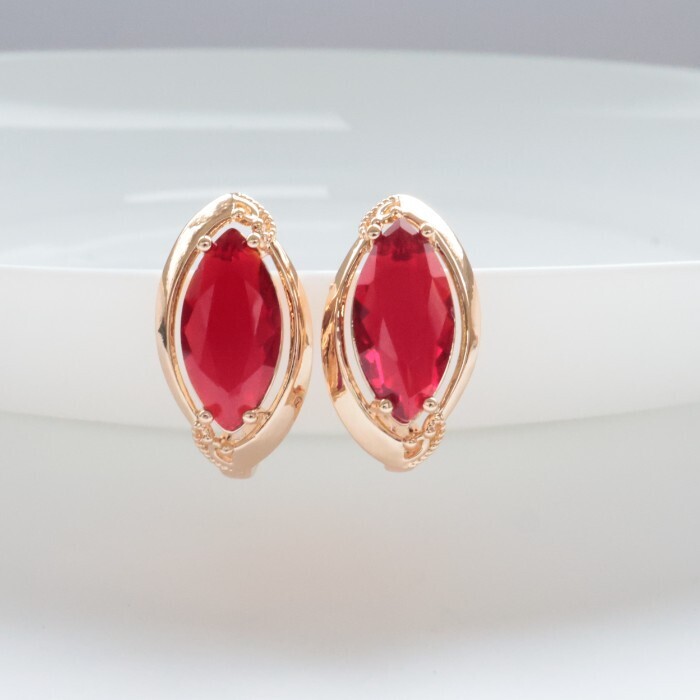 Серьги с крупным камнем ювелирная бижутерия коллекция "Дубай" покрытие: позолота, вставка: фианиты, цвет: красный, арт.314.374 2 фото