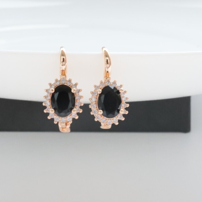 Серьги с крупным камнем ювелирная бижутерия коллекция "Дубай" покрытие: позолота, вставка: фианиты, цвет: черный, арт.314.376 2 фото