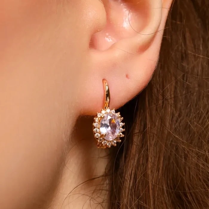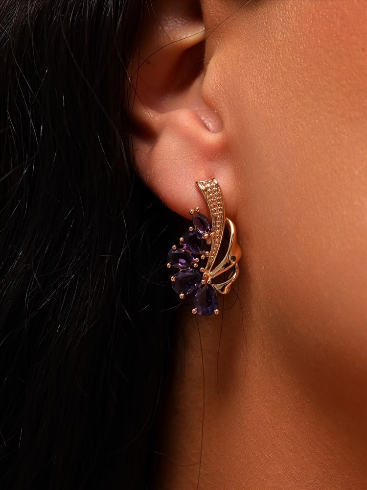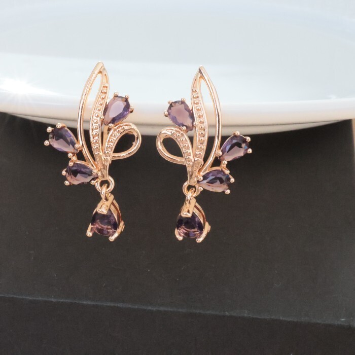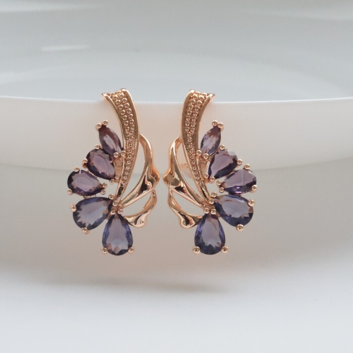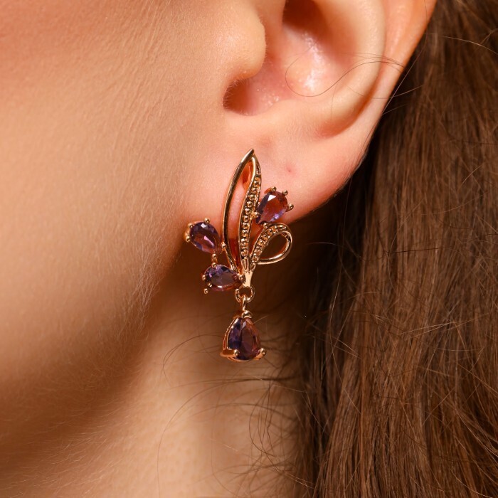 Серьги цветы ювелирная бижутерия коллекция "Дубай" покрытие: позолота, вставка: фианиты, цвет: фиолетовый, арт.314.391 2 фото