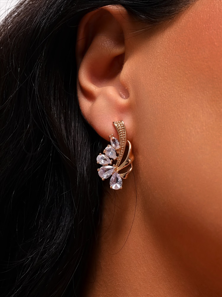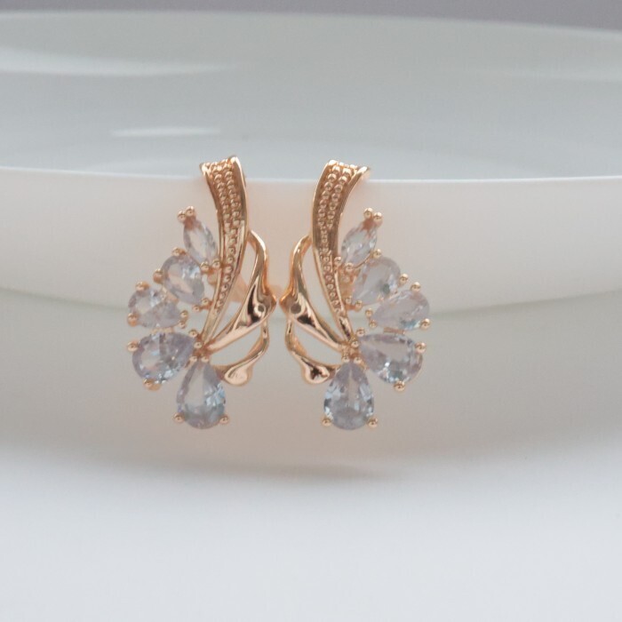 Серьги цветы ювелирная бижутерия коллекция "Дубай" покрытие: позолота, вставка: фианиты, цвет: прозрачный, арт.314.390 2 фото