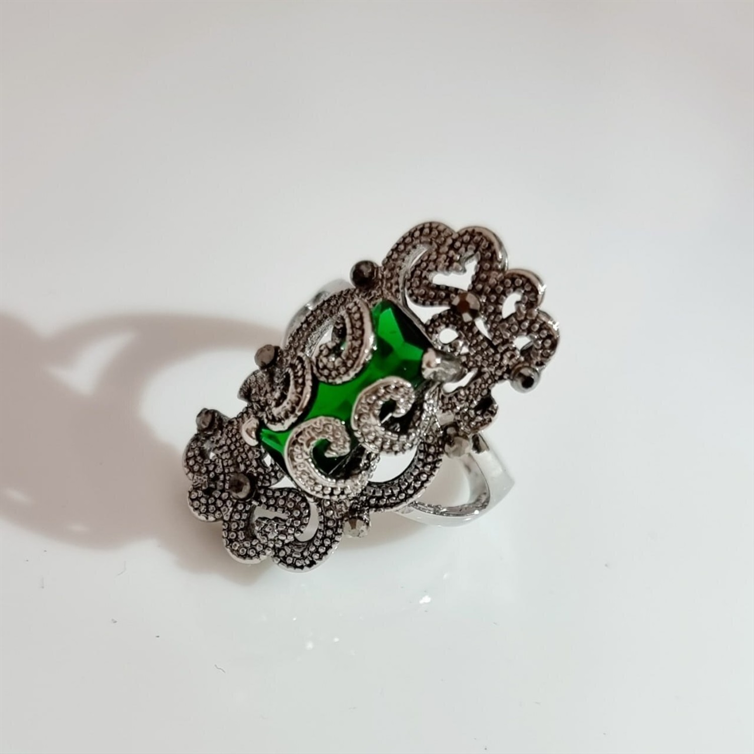 Кольцо перстень крупный ювелирная бижутерия, покрытие посеребрение, вставка: фианиты, цвет графит и зеленый, 18 р, арт.213.742-18
