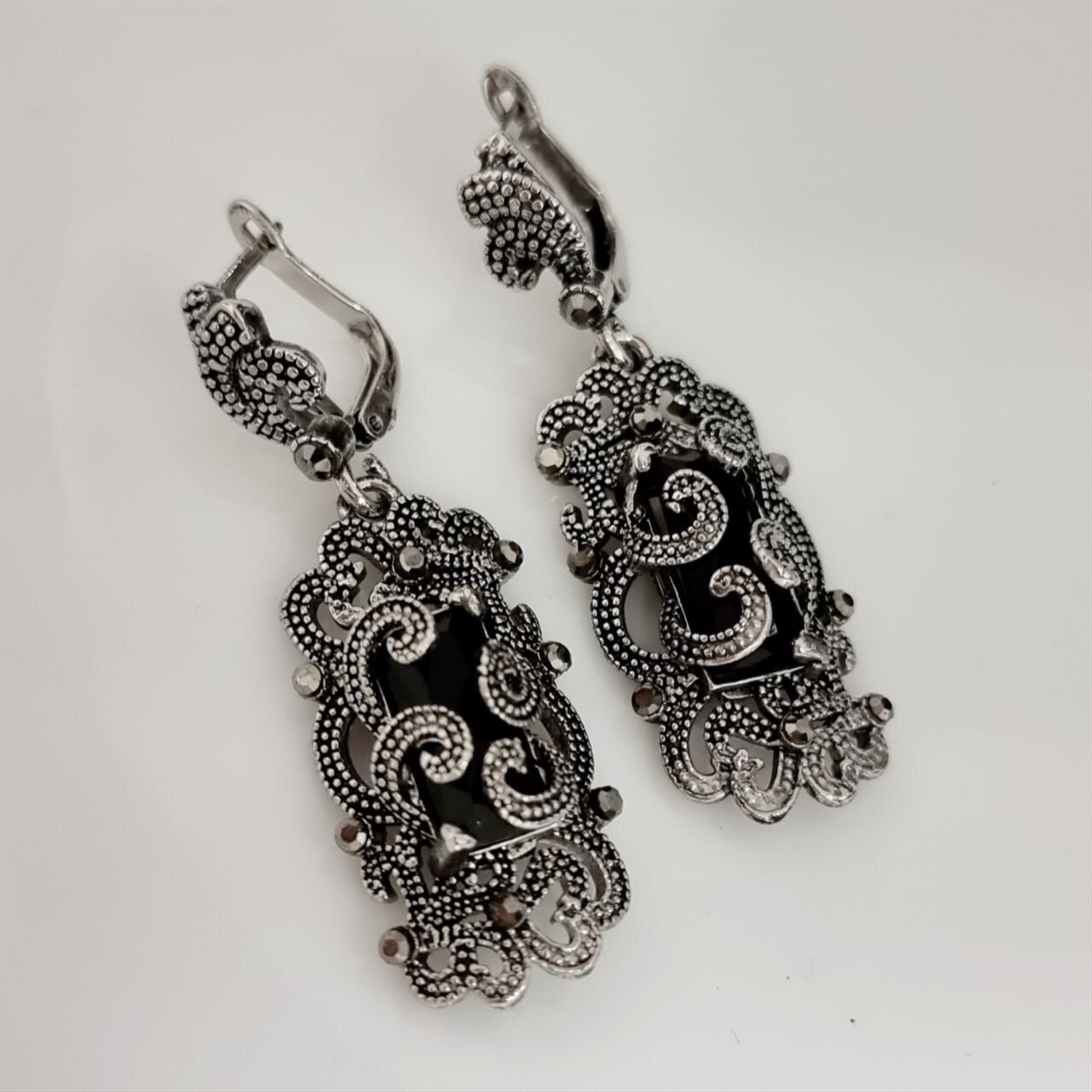 Серьги подвески ювелирная бижутерия, покрытие посеребрение, вставка: фианиты, цвет графит и черный, Уценка,  арт.213.735