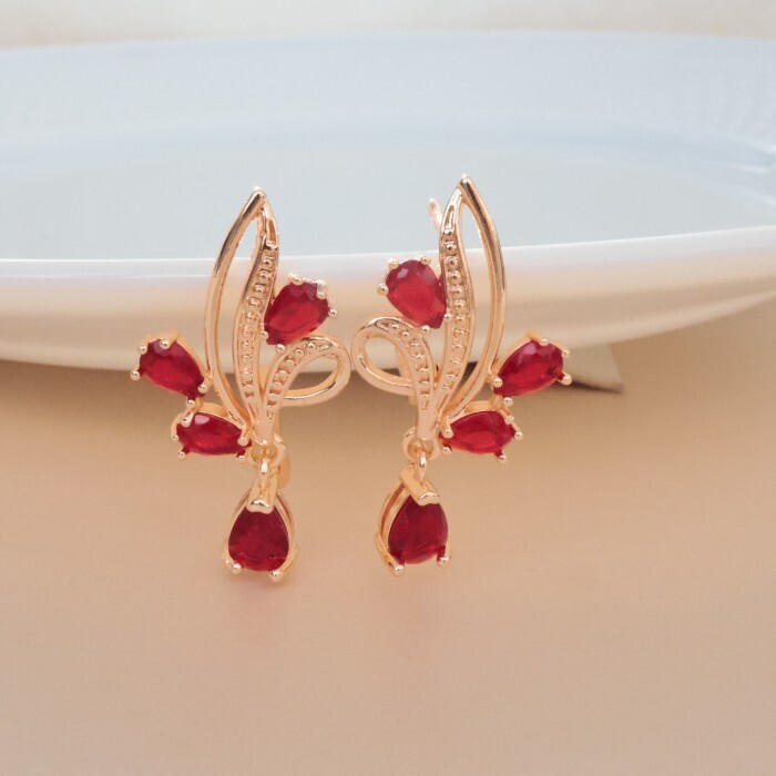 Серьги цветы ювелирная бижутерия коллекция "Дубай" позолота, вставка: фианиты, цвет: красный, арт.314.333 2 фото