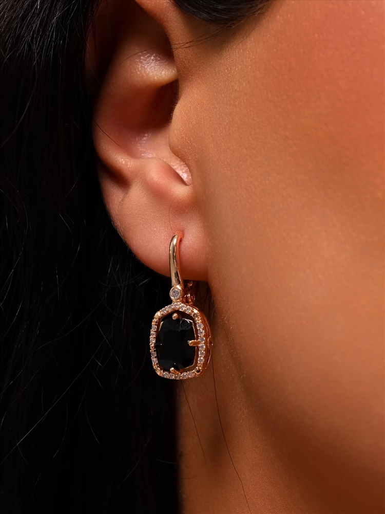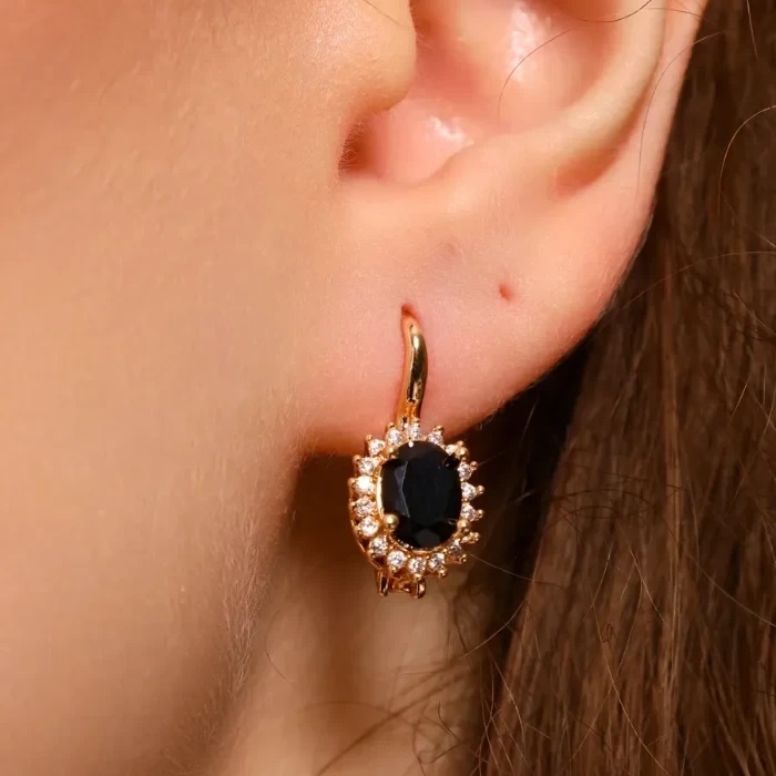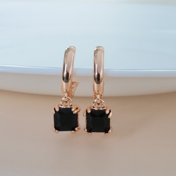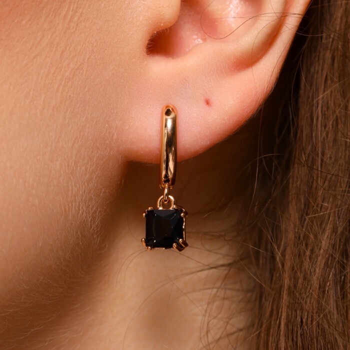 Серьги с камнем ювелирная бижутерия коллекция "Дубай", покрытие позолота, вставка: фианиты, цвет: черный, арт.314.379 2 фото