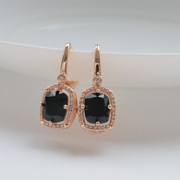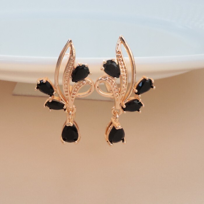Серьги ювелирная бижутерия коллекция "Дубай" покрытие позолота, вставка: фианиты, цвет: черный, арт.314.342 2 фото