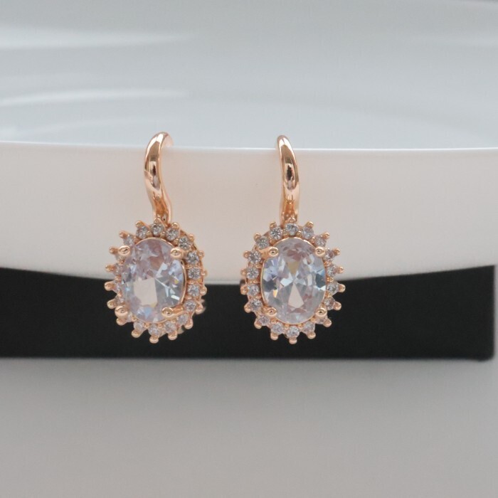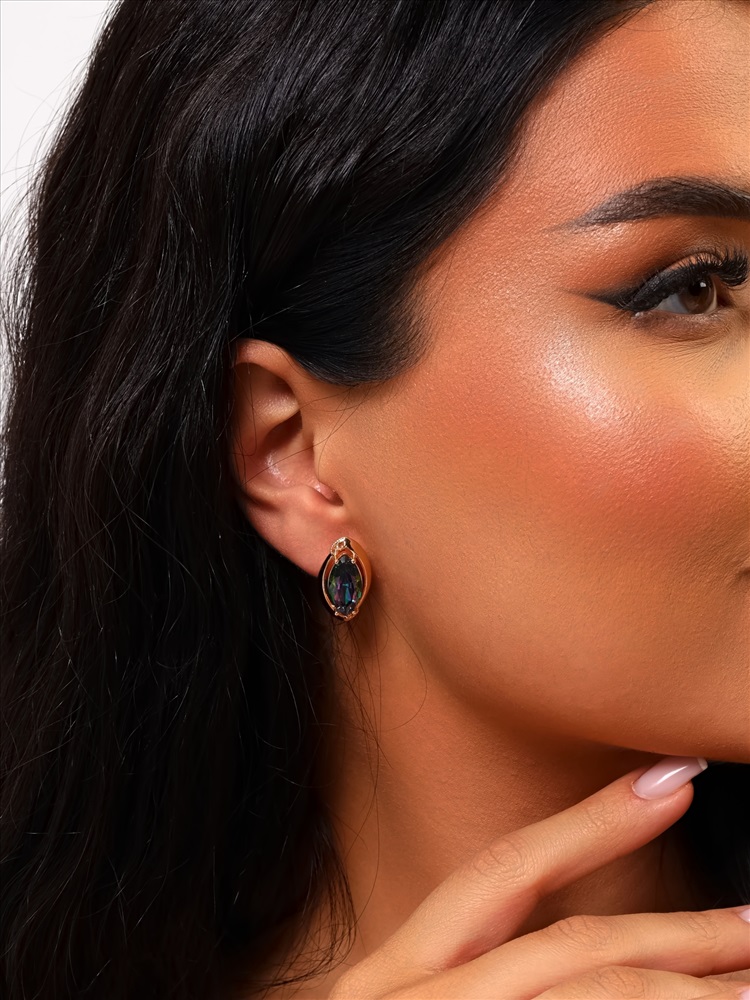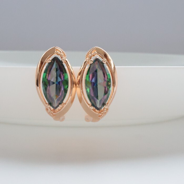 Серьги с крупным камнем ювелирная бижутерия коллекция "Дубай" покрытие: позолота, вставка: фианиты, цвет: мистик, арт.314.377 2 фото