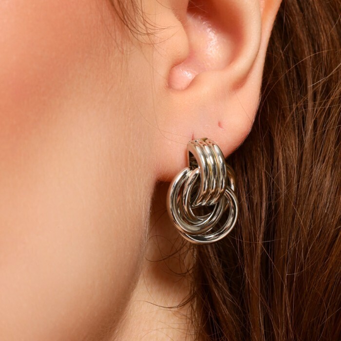 Серьги ювелирная бижутерия круглые, покрытие посеребрение, арт.213.718 2 фото