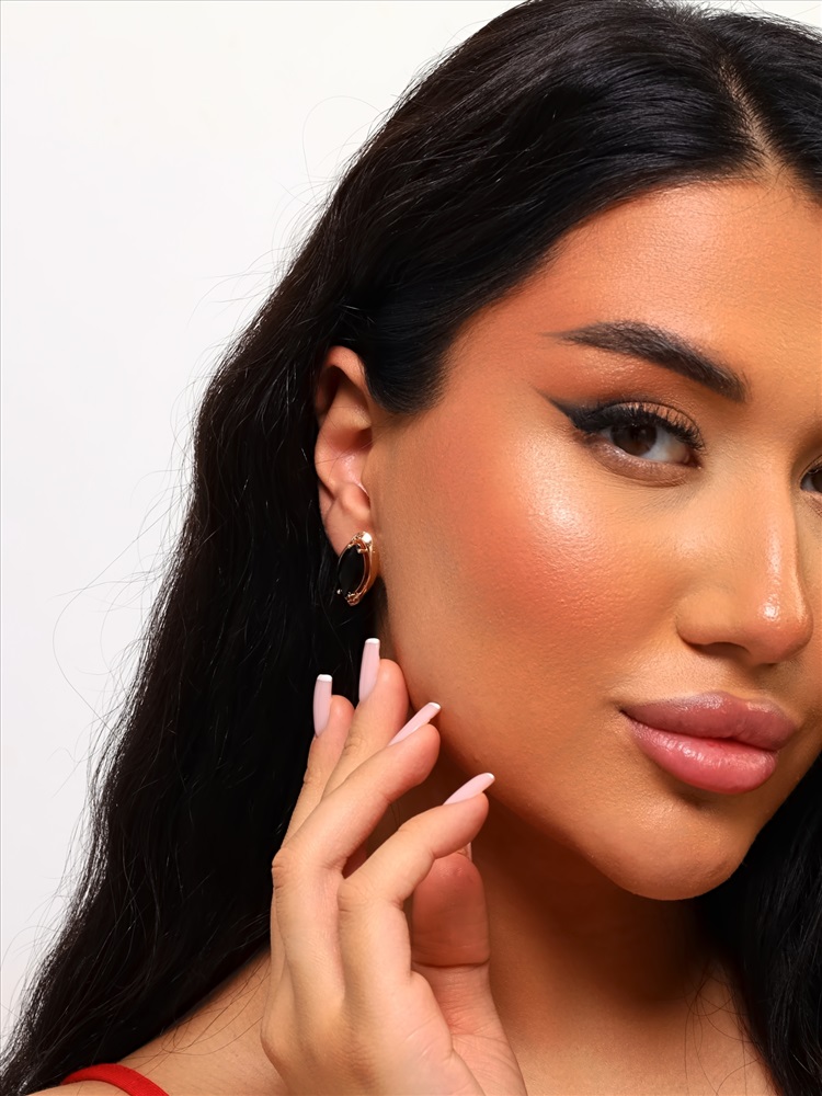Серьги круглые ювелирная бижутерия коллекция "Дубай" покрытие: позолота, вставка: фианиты, цвет: черный, арт.314.385 2 фото