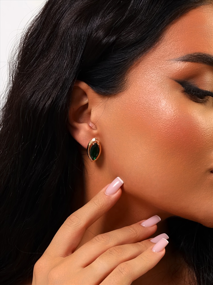 Серьги с крупным камнем ювелирная бижутерия коллекция "Дубай" покрытие: позолота, вставка: фианиты, цвет: зеленый, арт.314.375 2 фото