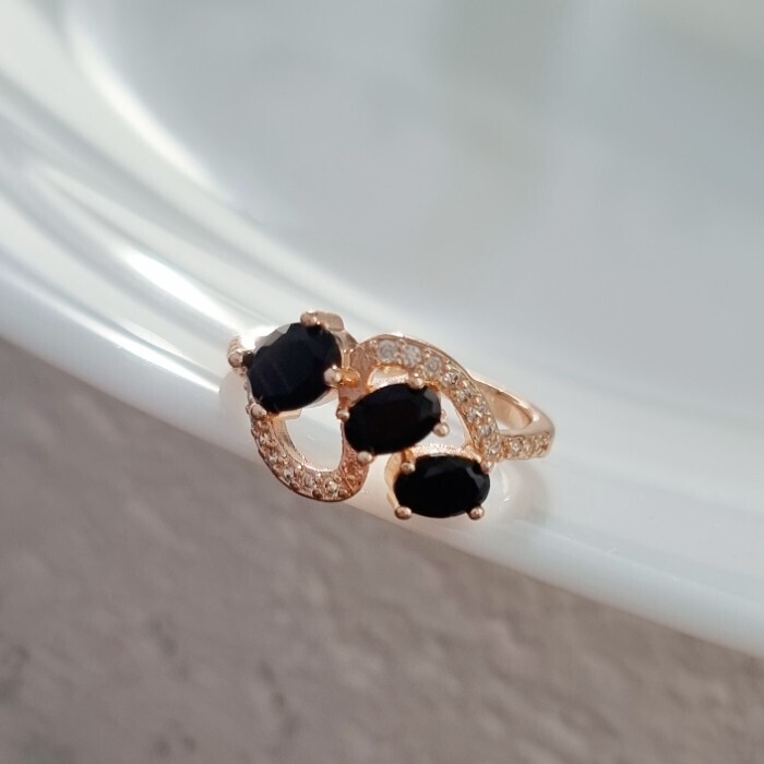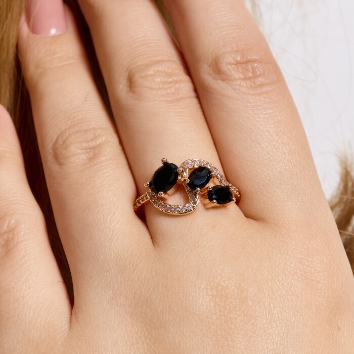 Кольцо 17 р ювелирная бижутерия коллекция "Дубай", покрытие позолота, вставка: фианиты и цирконы, цвет: черный и прозрачный, арт.414.119-17 2 фото