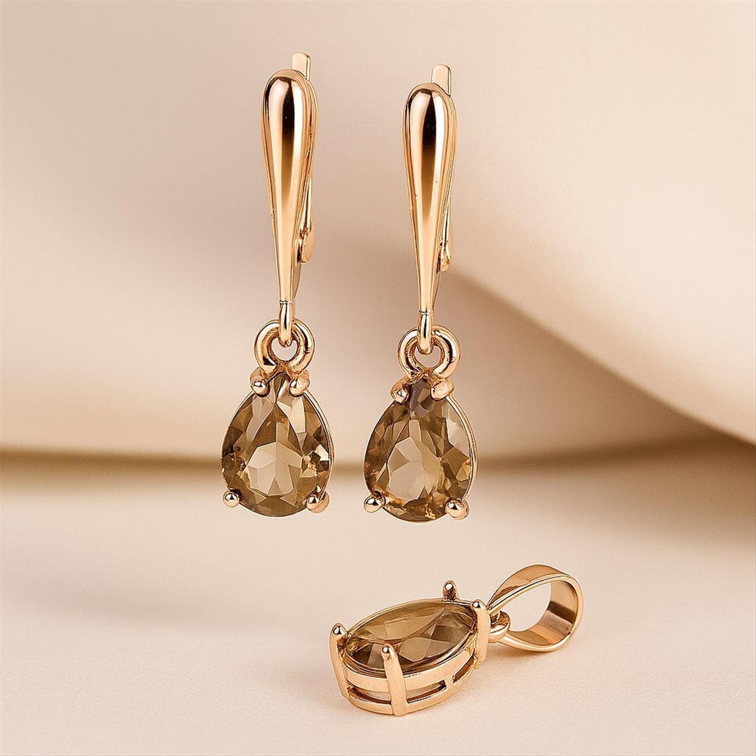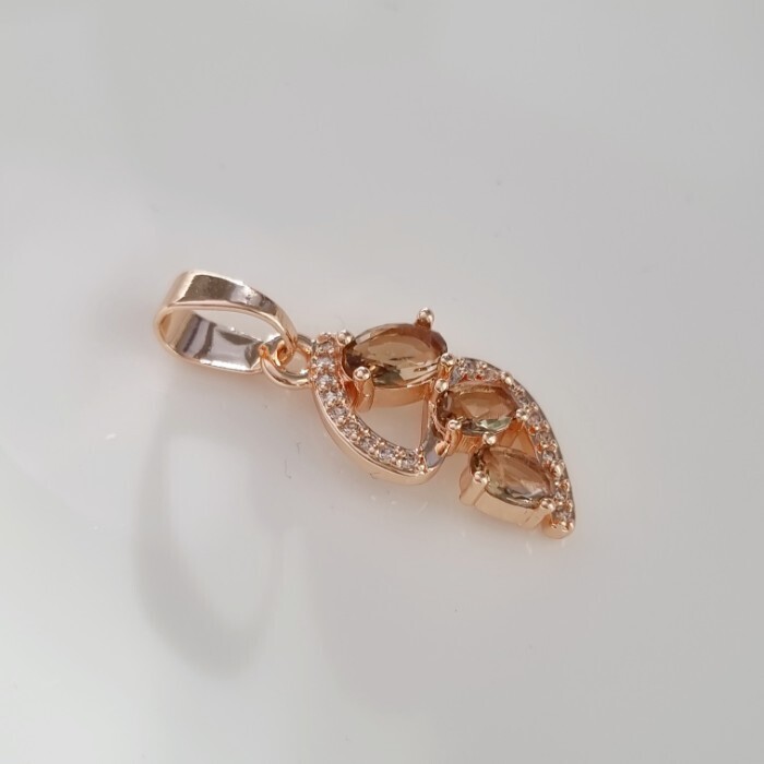 Комплект ювелирной бижутерии коллекция "Дубай" серьги и кулон, покрытие позолота, вставка: фианиты и цирконы, цвет: бежевый и прозрачный, арт.414.028 3 фото