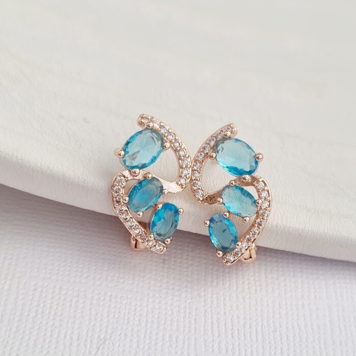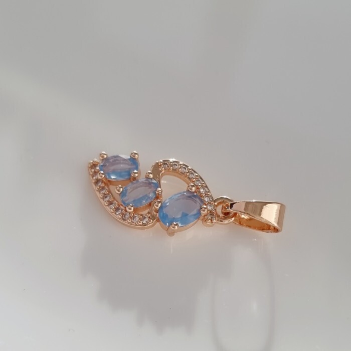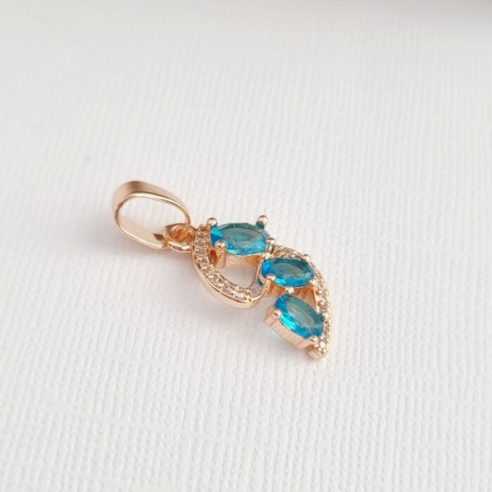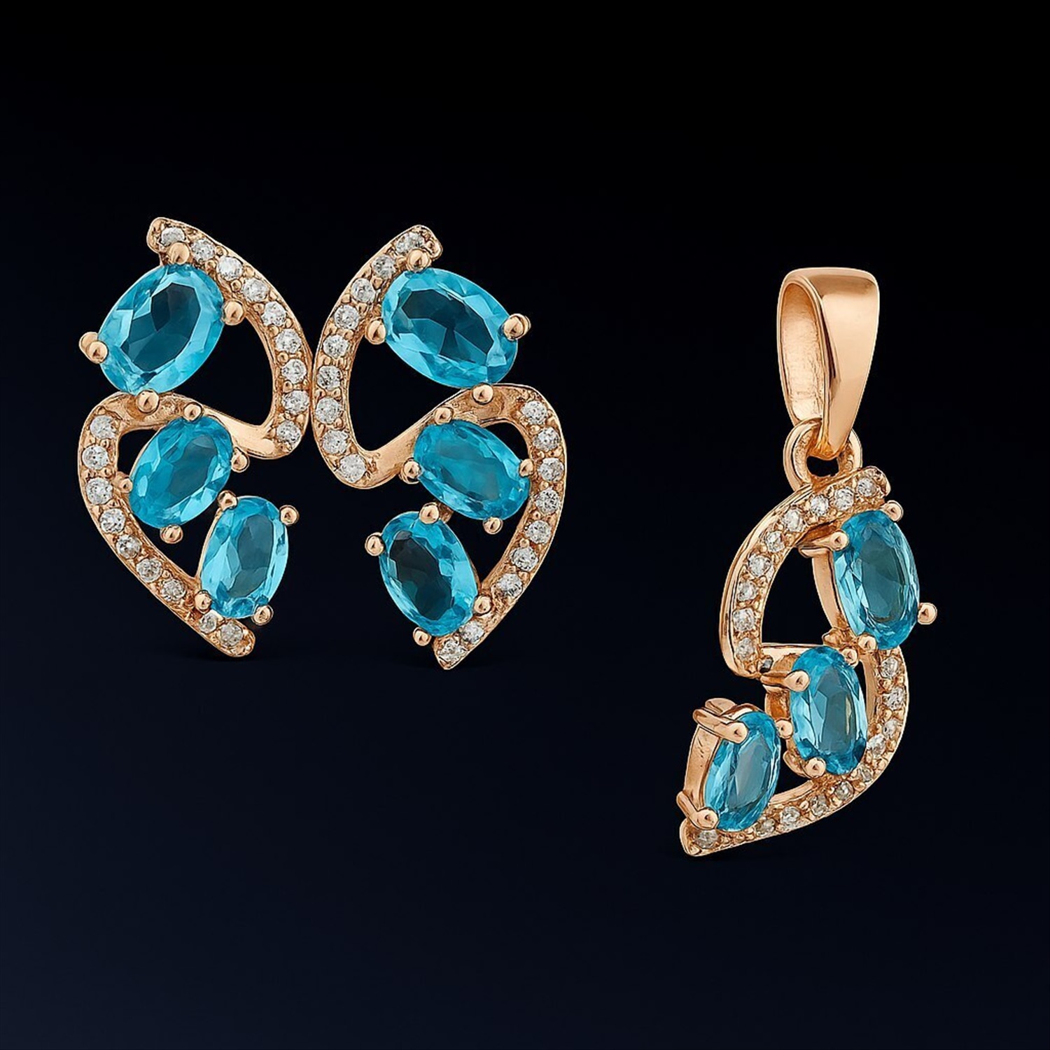 Комплект ювелирной бижутерии коллекция "Дубай" серьги и кулон, покрытие позолота, вставка: фианиты и цирконы, цвет: голубой и прозрачный, арт.414.026 3 фото