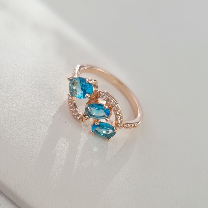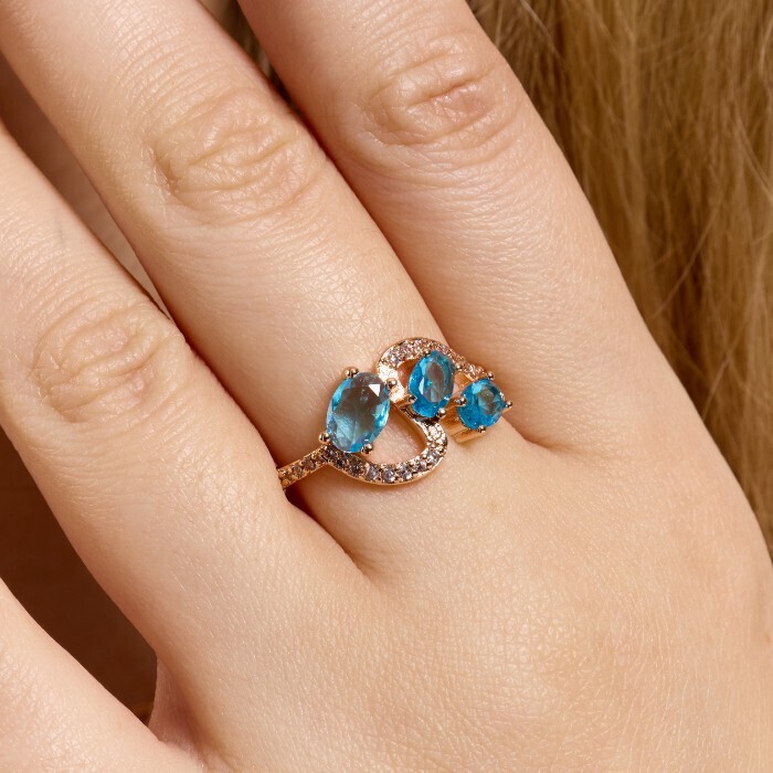 Кольцо 17 р ювелирная бижутерия коллекция "Дубай", покрытие позолота, вставка: фианиты, цвет: голубой, арт.414.099-17 2 фото