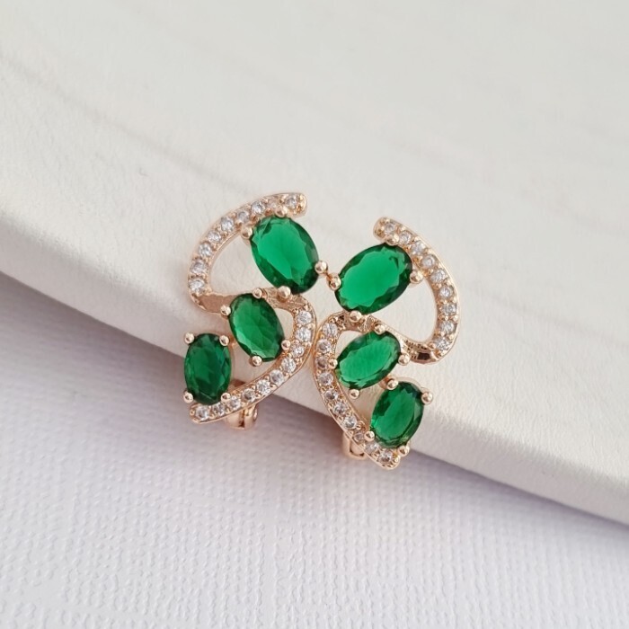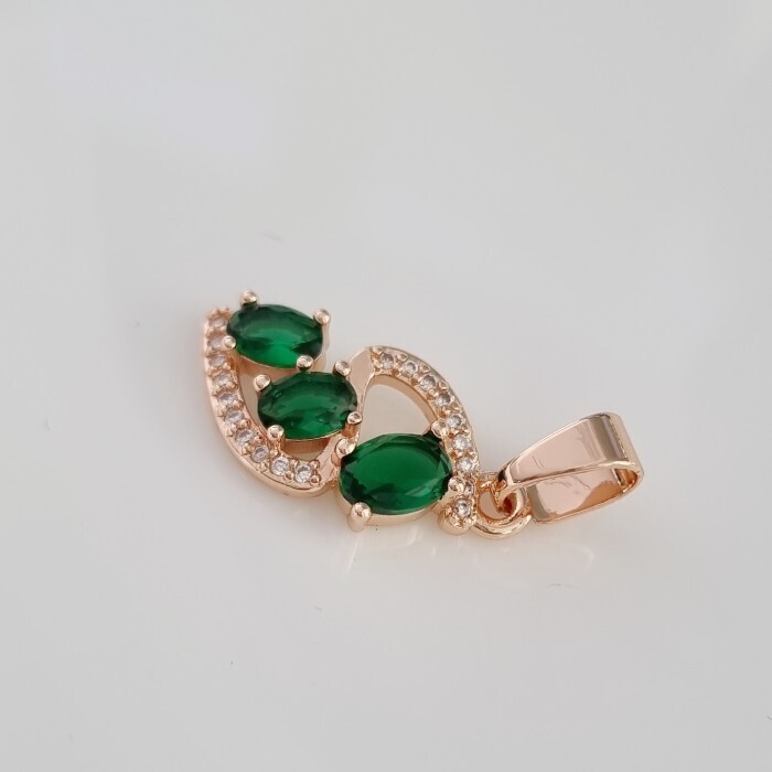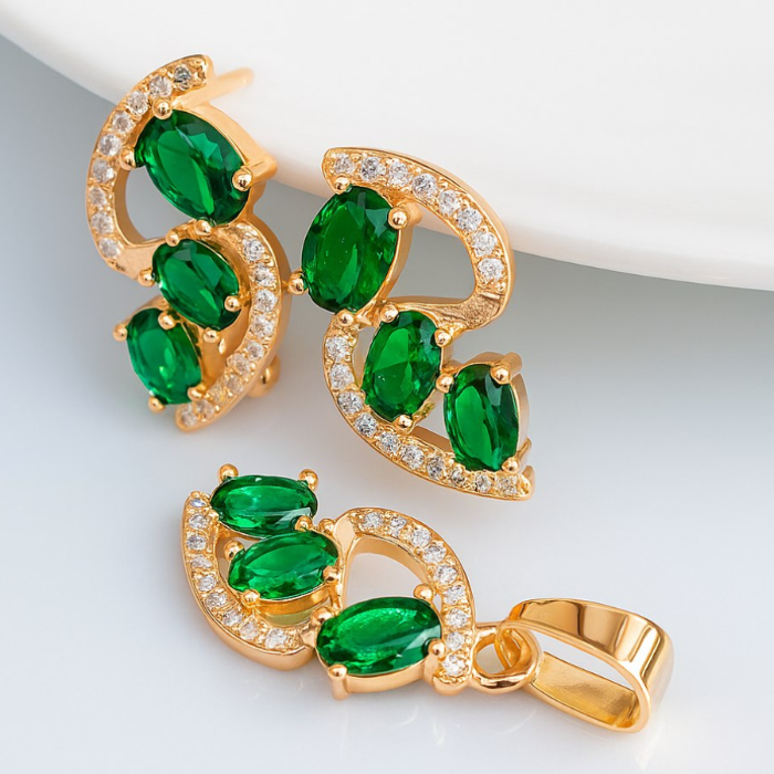 Комплект ювелирной бижутерии коллекция "Дубай" серьги и кулон, покрытие позолота, вставка: фианиты и цирконы, цвет: зеленый и прозрачный, арт.414.030 3 фото