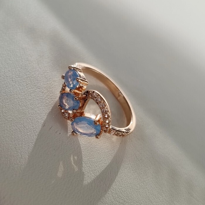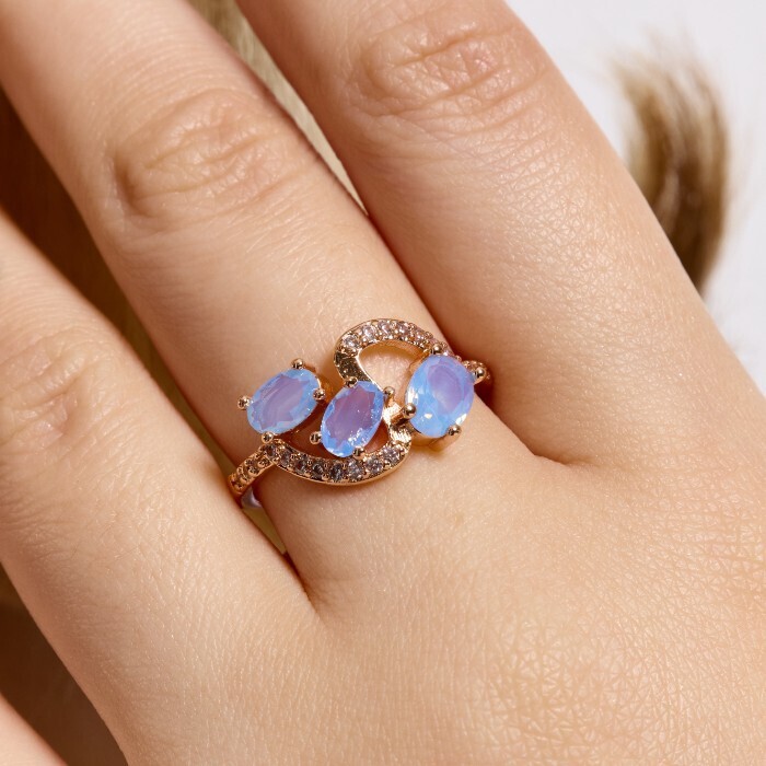 Кольцо 20 р ювелирная бижутерия коллекция "Дубай", покрытие позолота, вставка: фианиты и цирконы, цвет: нежно-голубой и прозрачный, арт.414.117-20 2 фото