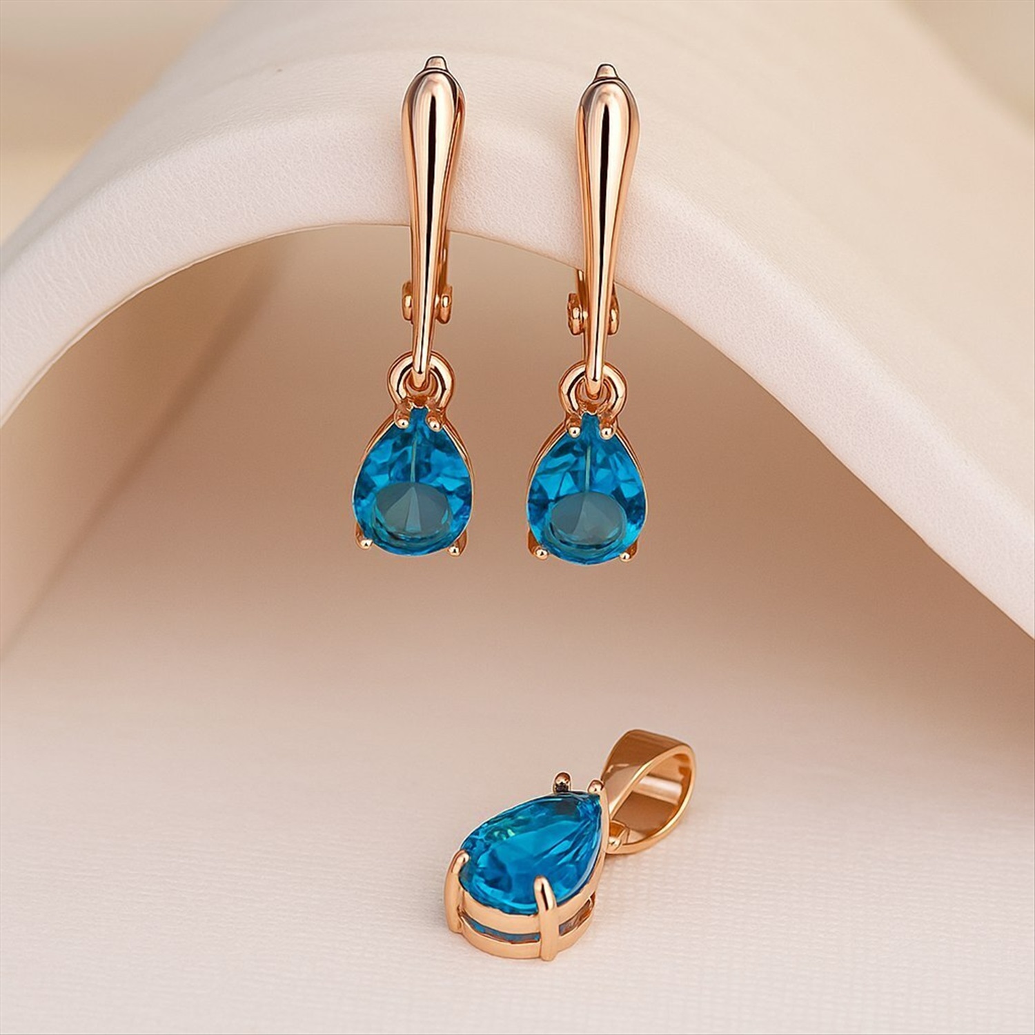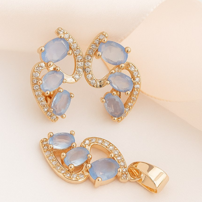 Комплект ювелирной бижутерии коллекция "Дубай" серьги и кулон, покрытие позолота, вставка: фианиты, цвет: голубой, арт.314.970