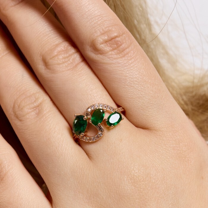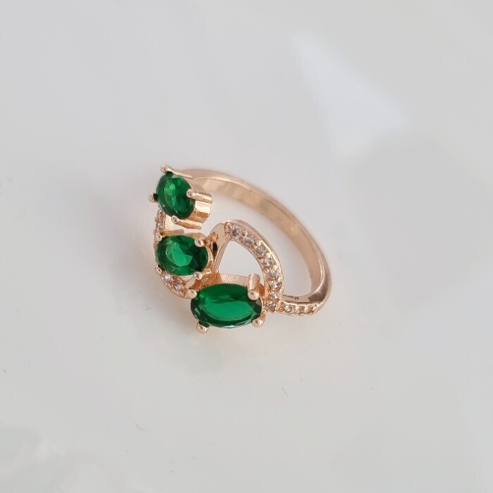 Кольцо 20 р ювелирная бижутерия коллекция "Дубай", покрытие позолота, вставка: фианиты и цирконы, цвет: зеленый и прозрачный, арт.414.122-20 2 фото