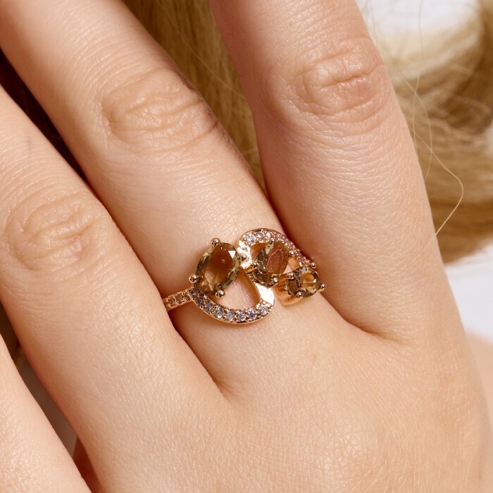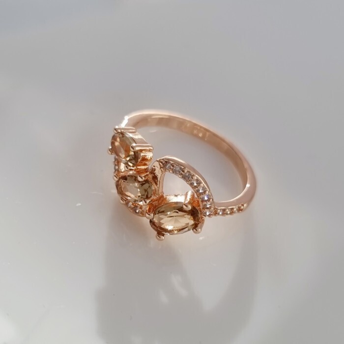 Кольцо 17 р ювелирная бижутерия коллекция "Дубай", покрытие позолота, вставка: фианиты и цирконы, цвет: бежевый и прозрачный, арт.414.120-17 2 фото