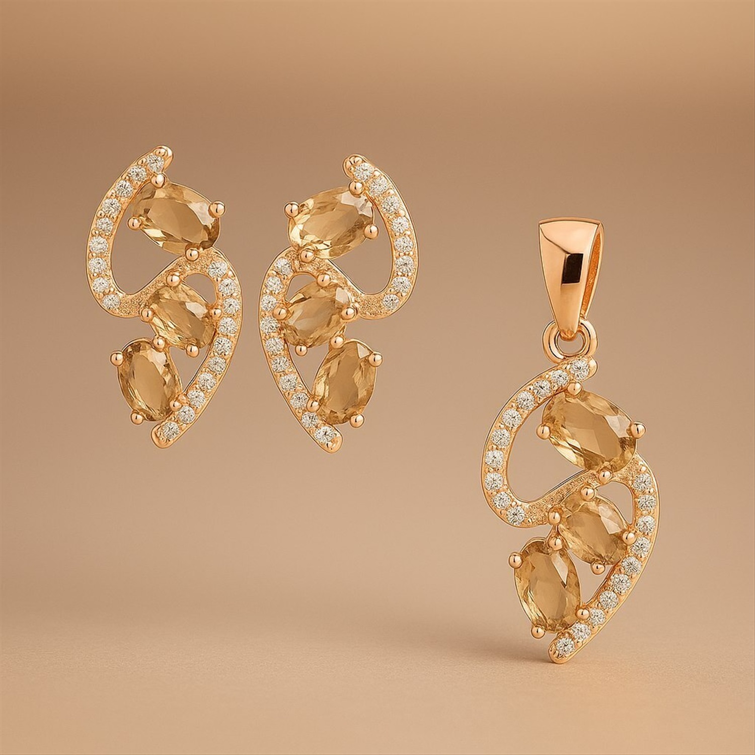 Комплект ювелирной бижутерии коллекция "Дубай" серьги и кулон, покрытие позолота, вставка: фианиты, цвет: бежевый, арт.314.976