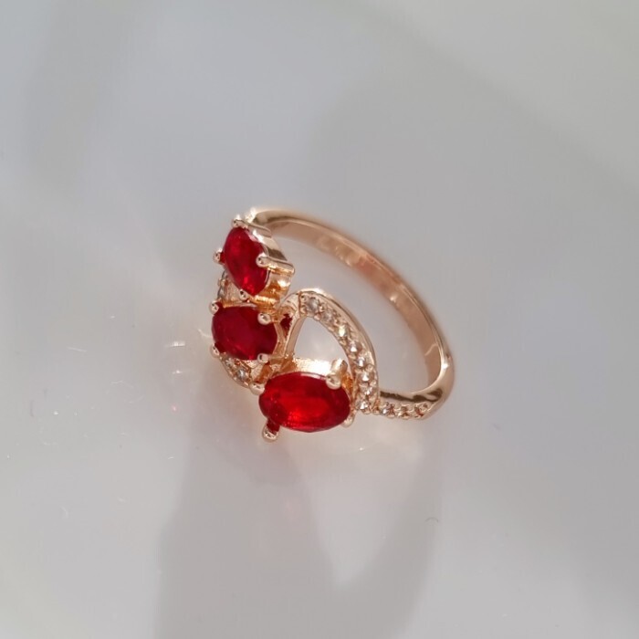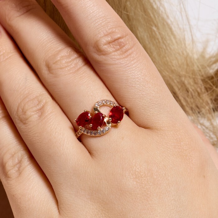 Кольцо 17 р ювелирная бижутерия коллекция "Дубай", покрытие позолота, вставка: фианиты, цвет: красный, арт.414.100-17 2 фото