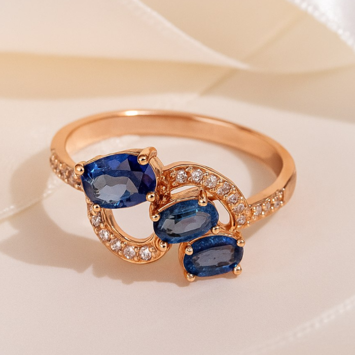 Кольцо 19 р ювелирная бижутерия коллекция "Дубай", покрытие позолота, вставка: фианиты и цирконы, цвет: синий и прозрачный, арт.414.121-19 2 фото