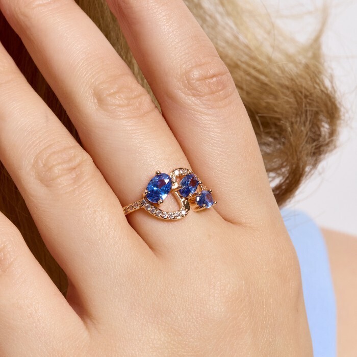 Кольцо 20 р бижутерия коллекция "Дубай", покрытие позолота, вставка: фианит, цвет: синий, арт.414.153-20 2 фото