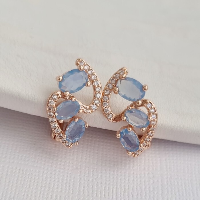 Кольцо 17 р ювелирная бижутерия коллекция "Дубай", покрытие позолота, вставка: фианиты и цирконы, цвет: нежно-голубой и прозрачный, арт.414.117-17 2 фото