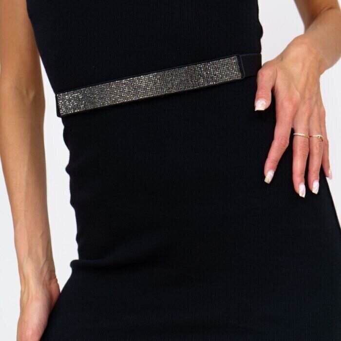 Ремень пояс со стразами, цвет резинки: черный, стразы цвет: серый, арт.748.356 2 фото