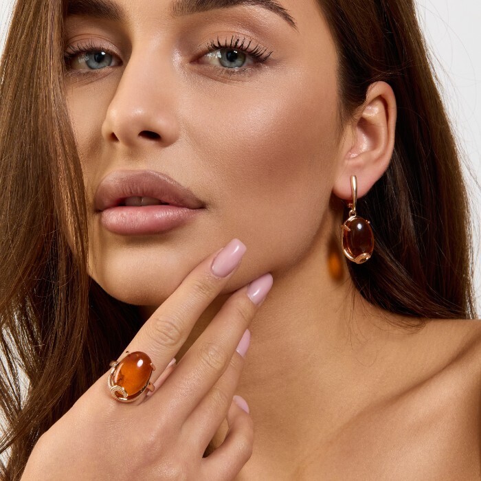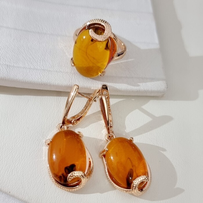 Комплект ювелирной бижутерии коллекция "Дубай" серьги и кольцо 20 р покрытие позолота, вставка: искусственный янтарь, арт.414.231-20 2 фото