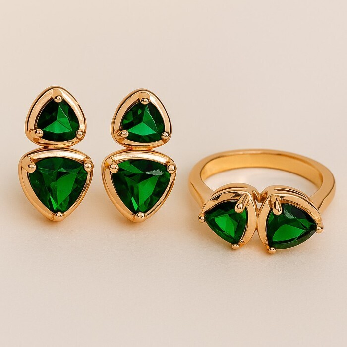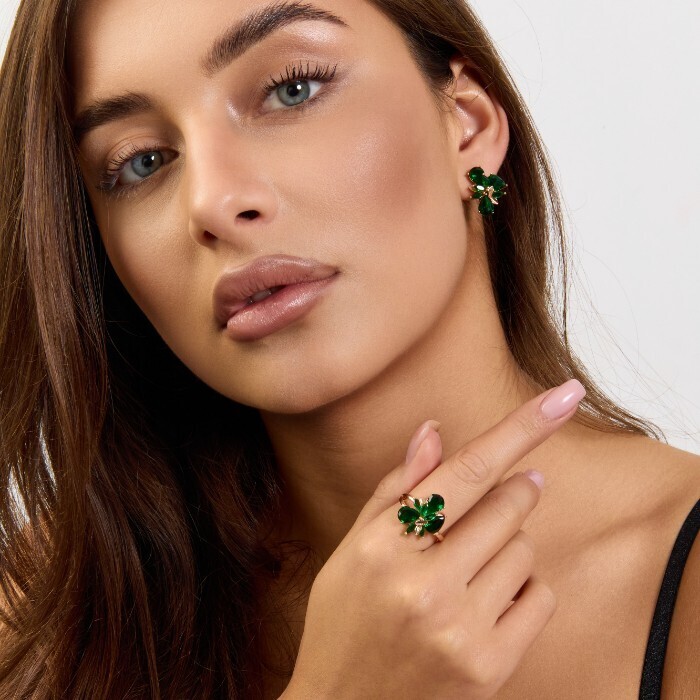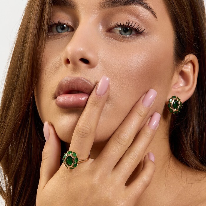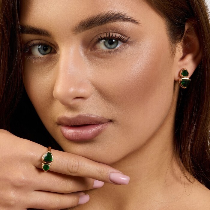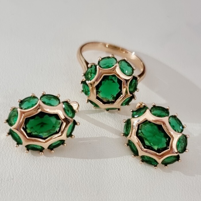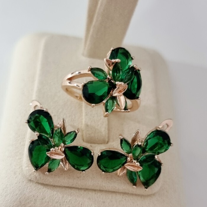 Комплект ювелирной бижутерии коллекция "Дубай" серьги и кольцо 17 р, покрытие позолота, вставка: стекло, цвет: зеленый, арт.215.560-17 2 фото