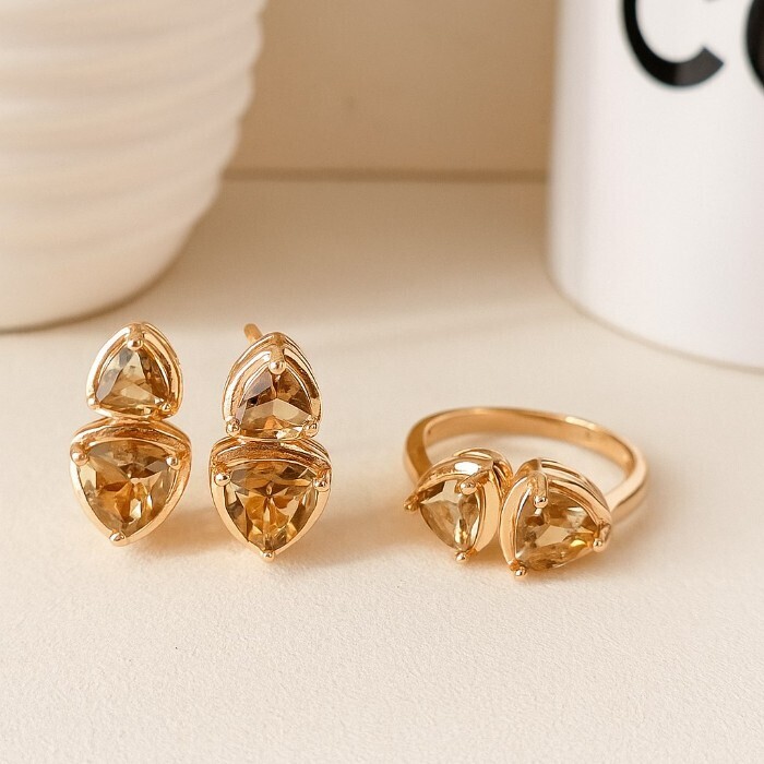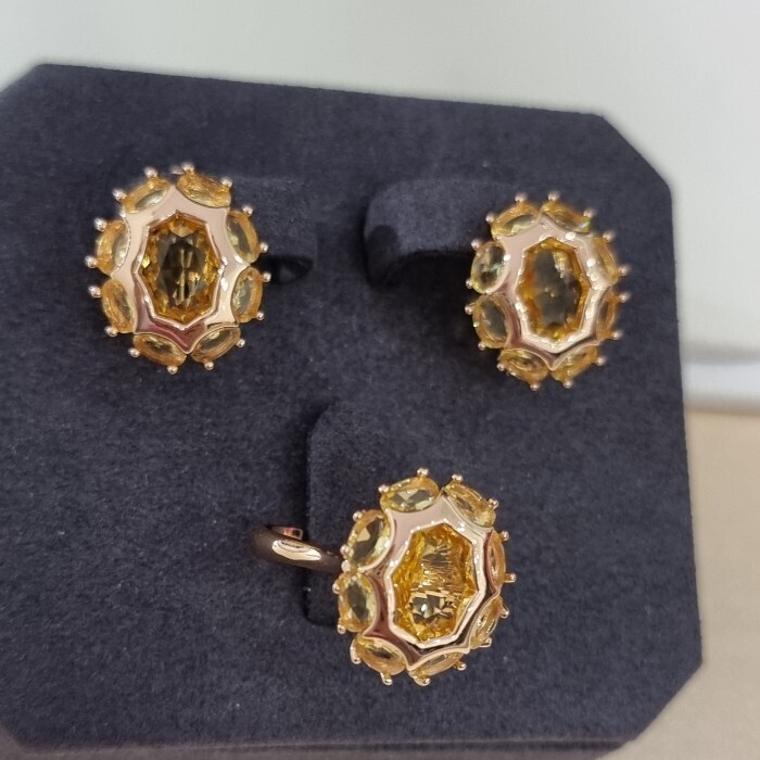 Комплект ювелирной бижутерии коллекция "Дубай" серьги и кольцо 17 р, покрытие позолота, вставка: стекло, цвет: желтый, арт.215.568-17 2 фото