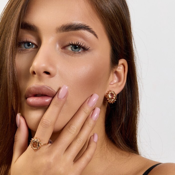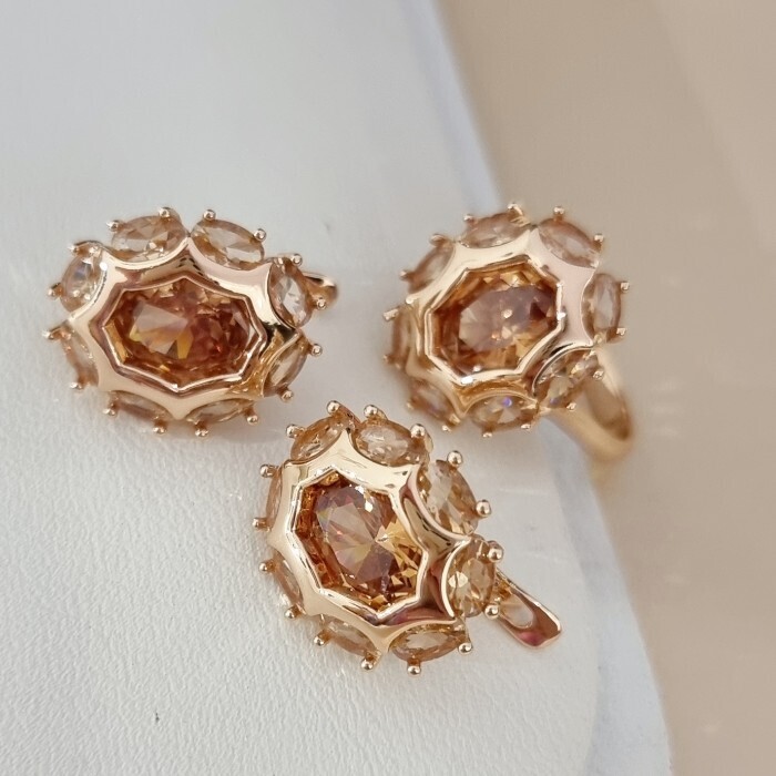 Комплект ювелирной бижутерии коллекция "Дубай" серьги и кольцо 17 р, покрытие позолота, вставка: стекло, цвет: шампань, арт.215.573-17 2 фото