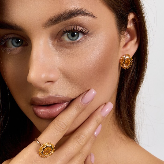 Комплект ювелирной бижутерии коллекция "Дубай" серьги и кольцо 20 р, покрытие позолота, вставка: стекло, цвет: желтый, арт.215.568-20 2 фото